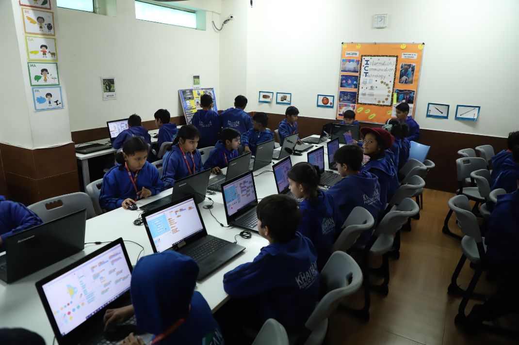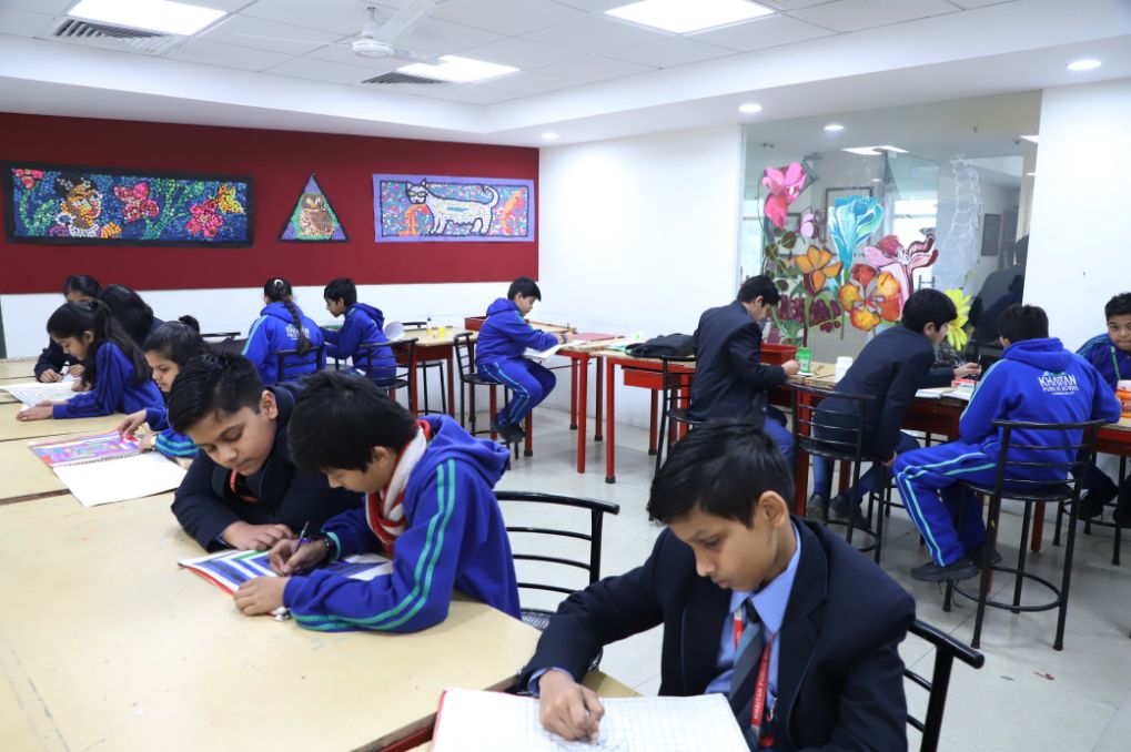 Khaitan Public School, has the 3.5-acre main campus of the school hosts 85 classrooms equipped with interactive boards, 40 activity rooms, well-equipped separate science laboratories for Physics, Chemistry and Biology. The school also hosts a computer lab and Maths lab.