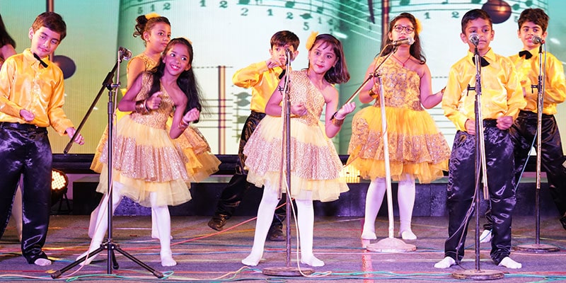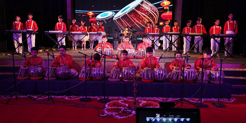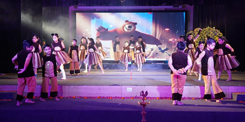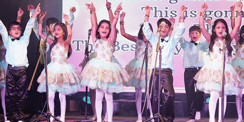 The celebration began with a warm welcome and a melodious fusion song that blended Indian Sargam with English lyrics, followed by the graceful Mangalam Swagatam. Grade 4 students further lifted the atmosphere with their cheerful rendition of “You Are My Sunshine” and the energetic percussion-based Mingle Theme.
