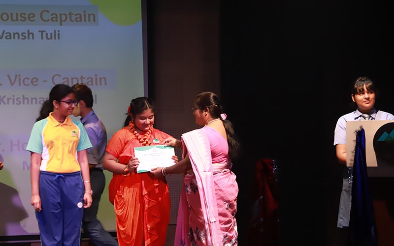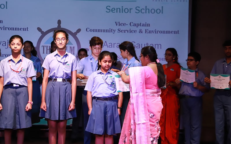 The outgoing Head Boy Tanisha Kaul and the Head Girl Ishita Bhardwaj  shared their experiences with everyone leaving the audience inspired and motivated with their parting words .