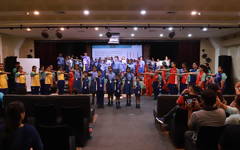 The guest of honour, Ms. Manju Gupta in her speech guided the student council members, the torch bearers of tomorrow, to be role models and render their responsibilities sincerely.
