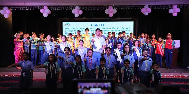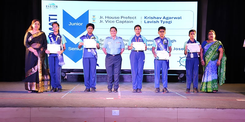 Khaitan Public School celebrated its prestigious Investiture Ceremony on 23rd May 2025, marking the formal induction of the Student Council and various student leaders for the academic session 2025–26. The event began with a warm Welcome and Introduction of the Prefectorial Board, followed by a spiritually uplifting Ganesh Vandana in the form of a Bharatanatyam performance, setting a graceful tone for the ceremony. The traditional Lamp Lighting Ceremony symbolised the dispelling of darkness and the dawn of new leadership. This was followed by the Principal’s Address, where the importance of student voice, service, and accountability was shared with the audience.