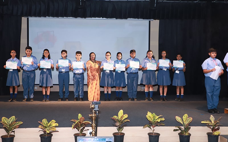 The much-awaited awards were announced for students of Grades 5-7, Session 2022-23. Certificates were awarded for various honours like Mahadevi Verma Award. Ramanujan Award, Uday Shankar Award, Lata Mangeshkar Award, Jamini Roy Award etc. The announcement of each award was followed by a thundering applause as students reaped the fruits of their labour and application.